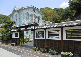 のんびり亭の隣には淡い青色の洋館。町立竹原書院図書館として昭和4年に建てられた洋館で、今は歴史民族資料館になっている。主に塩田関係の資料を展示しているらしい。基本的に歴史には無頓着だし有料なので入館していない(100円だけど…)。 |