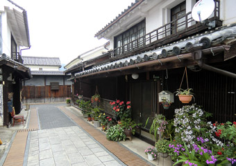 本町通りの横路地や裏路地にも古い町並み風景は残されていて、入場見学できる屋敷や土産物を販売する酒造などもある。 |