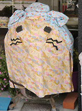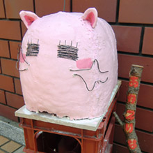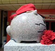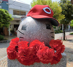 竹原駅前から続く商店街には「ももねこ様像」なる大理石像がある。これはアニメたまゆらに出てくる架空の生き物。アニメがきっかけで竹原が広く知られるようになり、竹原でアニメイベントなども行われ遂にはこんな像までつくってしまった。ももねこ様は石像だけではなく、営業している複数の店先でも見かける。あっちの店にもこっちの店にも。どれも手作りのよう。ももねこ様のグッズ販売をしている店も。ほぼ竹原のマスコットになってしまっている。アニメを知らない人が観光に来てこれを見たら、竹原のご当地ゆるキャラだと勘違いするに違いない。 |