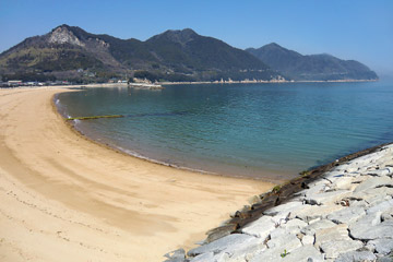 綺麗な砂浜海岸が魅力のゆめしま海道だが、しまなみ海道の島々とは橋で繋がっていない離島群であるためか、快晴の休日でも観光やサイクリングをする人の姿は非常に少ない。法王ヶ原訪問時は自分以外に人の姿は無く、隣にある松原海水浴場もシーズンオフで人影無し。絶好のサイクリングスポットでもあるのに、サイクリングを開始してからここまでの道のりの間に見かけたサイクリストの姿は5、6人ほど。 |