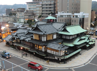 道後温泉本館は日本書紀にも登場する日本最古の温泉で、公衆浴場で唯一の重要文化財。300年の歴史があり、現在の建物は明治27年に建てられたもの。小説坊ちゃんにも登場していて、夏目漱石も常連客だったとか。入浴コースが4つあり、コースによって高級な浴場や休憩室が使えたりする。温泉の温度が平均43℃と高めで、熱い湯が苦手な自分には長湯出来そうもないので、一番安いコースを選択し入泉。 |