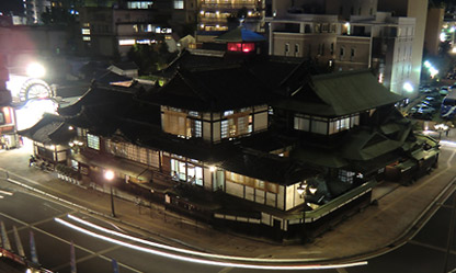 浴場には歴史を感じるものの、大雑把な雰囲気でごく普通の銭湯と言った感じ。一番安いコースの浴場だからか。湯はやはり自分には熱く、ゆっくりと浸かっていられない。露天スペースなど無いので体を冷ますことも出来ず、あっという間に茹だってしまい30分くらいで浴場を出る。温泉好きなのに熱い湯に入れない損な体質… ちなみに、道後温泉本館と道路を挟んだ向かいにある高台の駐車場は、本館をいい感じに見下ろせる撮影スポット。背景が近代建築物でなければ尚良かった。 |