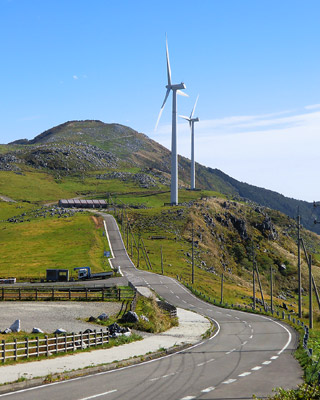 車から外に出るとかなり寒い。でも気持ちいい。8:30過ぎでまだ観光客の姿は無く、風の音しか聞こえない。緑の丘陵地と青い空、そして白い風車。空が近く感じる。四国カルストの雄大な風景をじっと眺めていると、身体全体でカルスト台地の自然を体感しているような気分になってくる。こんなにも気持ち良く自然を感じることが出来たのは久し振りな気がする。四国カルストは四国で一番印象に残る場所となった。 |