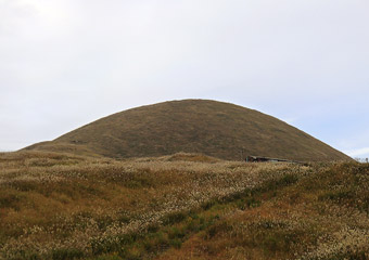草千里ヶ浜から車を少し走らせ米塚の前へ。目の前から眺める米塚は特徴的な円錐の形が分からないので、草千里ヶ浜の展望台からの眺めほどインパクトは無かった。残念ながら一般人は立ち入り禁止で米塚の上に登ることはできない。どんよりとした曇り空で視界も霞んでいるので、どうせ登ったところで眺めは残念だが。。時間は16:00を過ぎ、曇り空に気分も上がらないのでここで阿蘇観光は切り上げ、熊本市街の亀の井ホテルへ戻る事に。 |