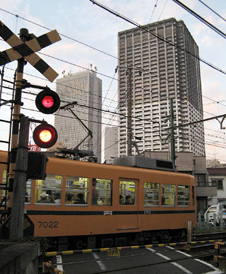 鬼子母神前停留場から池袋方面を眺める |
