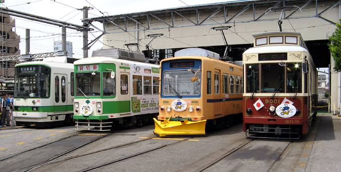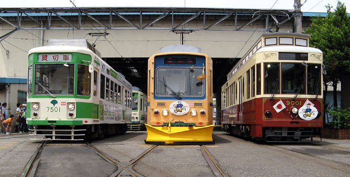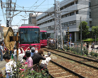 毎年6月10日は路面電車の日。「ろ(6)テン(10)→路電→路面電車」…という語呂合わせ。都電荒川線は荒川車庫で毎年記念イベントが行われているようで、2008年は6月10日に近い週末の6月7日(土)に行われた。 |