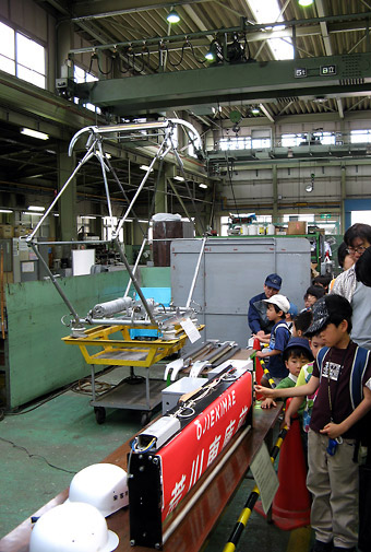普段は目にする事も無い作業場の見学もできた。作業場では車輪など都電の部品展示や、パンタグラフの開閉体験などが行われていた。このイベントから、都電が地域に密着し親しまれている事を改めて実感した。 |