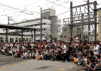 2009年6月14日に荒川車庫で6000形の撮影会が行われた。撮影会は10:00〜12:00で、終了間近の11:40頃に荒川車庫に着くと、6000形の前は沢山の来場者で埋まっていた。人だかりの後ろからでは手を上に伸ばしてカメラを構えても人の頭が写ってしまうので、にじり寄るように前へ前へ移動。 |