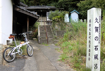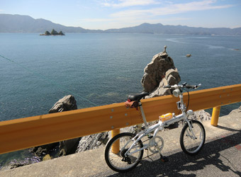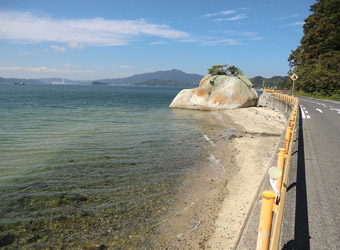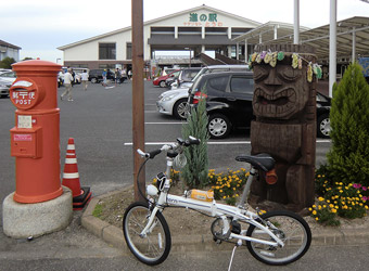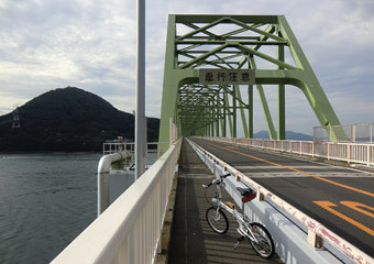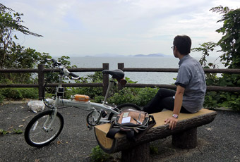 5:30頃目を覚まし再度寝ようとするも寝付けず、コンビニでおにぎりを買って食べて6:00に出発。本土と周防大島を繋ぐ大島大橋の手前にある特産品販売所「大畠観光センター」に6:30到着。販売所裏手にある無料駐車場に車を止める。残念ながら数日前からの天気予報通り空は曇り。今にも雨が降り出しそうな暗く厚い雲が広がり、とてもサイクリングを楽しめる空模様ではない。なので、時間を置けば少しはマシになることを期待して仮眠。そして8:00頃に目を覚ますが相変わらずの曇り空。しかも寝過ぎなのか体がやたらとダルい。もうこのまま気が済むまで寝ていたい気分になったが、そうもいかないので空模様を心配しつつもサイクリング開始。 |